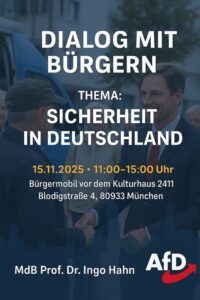 AfD Prof Dr Ingo Hahn Dialog mit Buergern 15.11.25 Blodigstrasse 4 80933M