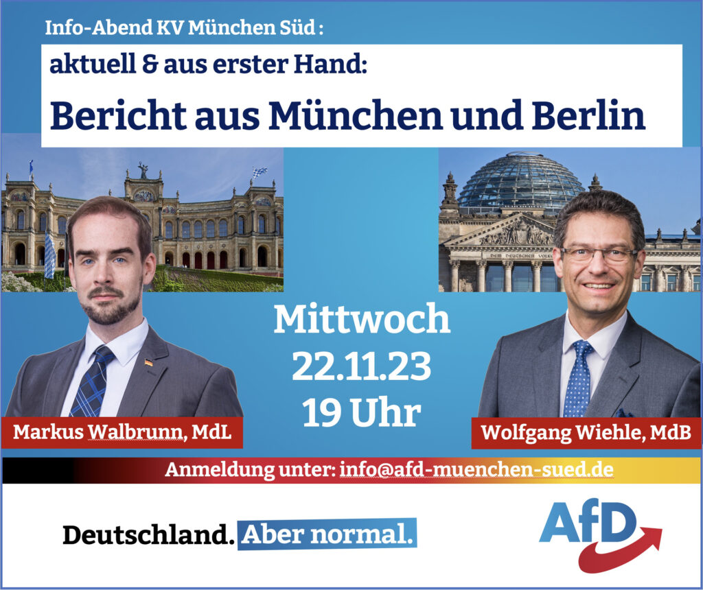 Veranstaltungshinweis: „📣 ES REICHT! Die „Sparpolitik“ der Ampel gehört sofort abgewählt‼️ Als bayerische AfD-Fraktion stehen wir an der Seite der Protestbewegung. Wir kämpfen gemeinsam für die Rücknahme von Sparmaßnahmen, die […]