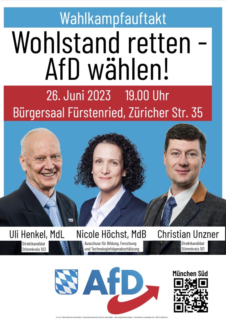 Mit einem Thema, das wirklich alle angeht, eröffnet die AfD München Süd den Wahlkampf für die bayrische Landtagswahl, die am 8. Oktober 2023 stattfindet. Dass der Wohlstand schwindet, merkt inzwischen […]