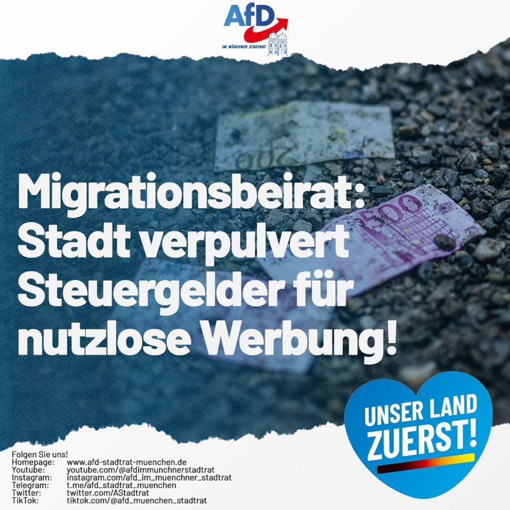 Mehr lesenMigrationsbeirat: Stadt verpulvert Steuergelder für nutzlose Werbung!