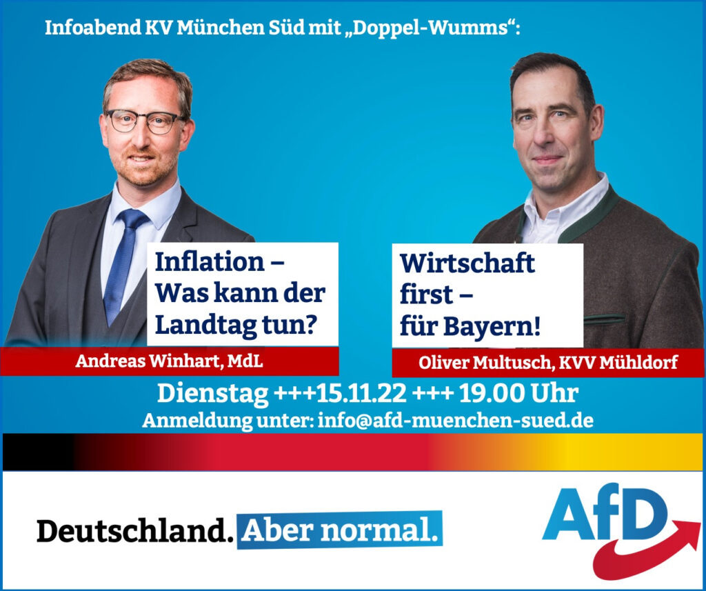Herzlich willkommen beim Infoabend der AfD München Süd! Zwei kompetente Gastreferenten sprechen über zwei topaktuelle Themen: Andreas Winhart MdL und KV Vorsitzender Rosenheim und Oliver Multusch, Stadtrat und KV Vorsitzender Mühldorf beleuchten […]
