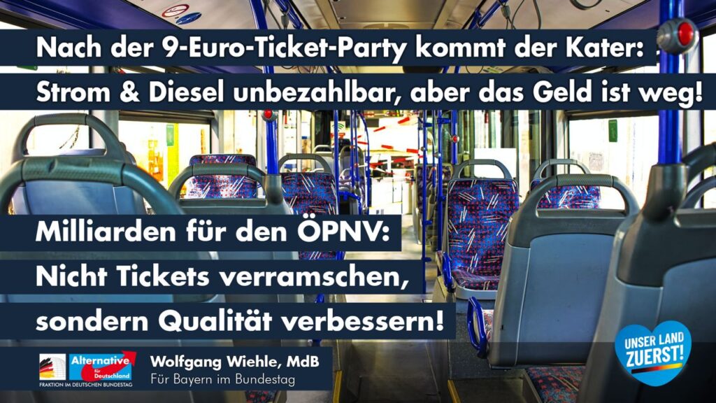 Mehr Geld für den ÖPNV – das fordert die Ampel-Koalition. „Das ist der von der AfD bereits angekündigte Kater nach dem 9-Euro-Ticket“, so Wolfgang Wiehle. In der Folge der Billigaktion […]