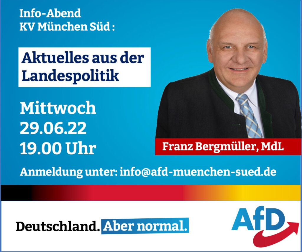 Sehr geehrte Damen und Herren, liebe Mitglieder und Freunde der AfD in München und dem Umland, die AfD-Stadtratsgruppe München lädt Sie herzlich zum Infoabend „Stadt trifft Land – Perspektiven für […]