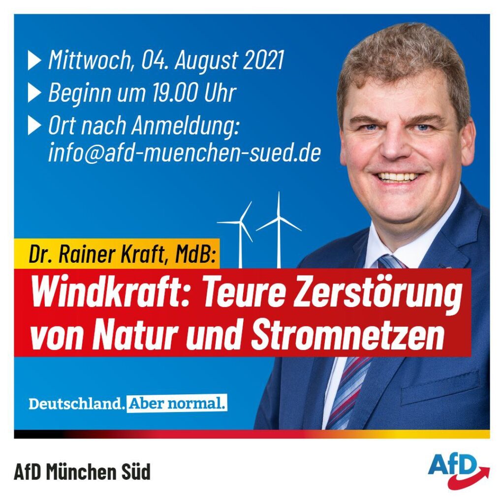 Corona ohne Ende? Einer, der uns dazu etwas erzählen kann, ist der Landtagsabgeordnete Andreas Winhart. Und anschließend wird – wie immer bei der AfD – diskutiert. Herzlich willkommen zum Infoabend […]