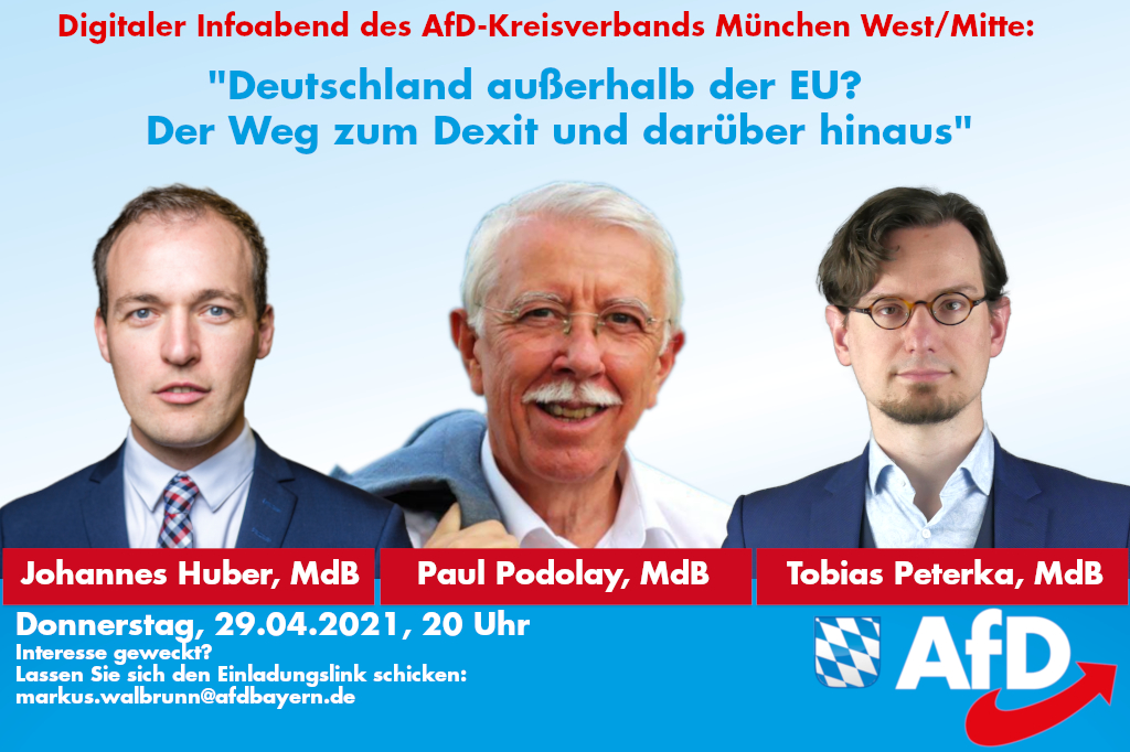 Sehr geehrte Damen und Herren, liebe Freunde des AfD-Kreisverbandes München West/Mitte, der Kreisverband lädt Sie herzlich zu seinem nächsten Digitalen Infoabend, am kommenden Donnerstag den 29.04.2021, um 20 Uhr, ein. […]