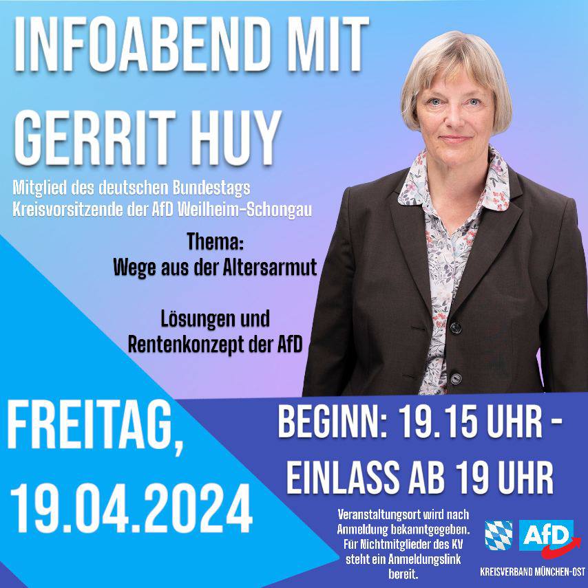 Mehr lesenInfoabend mit Gerrit Huy, MdB, am 19.04.2024 in München