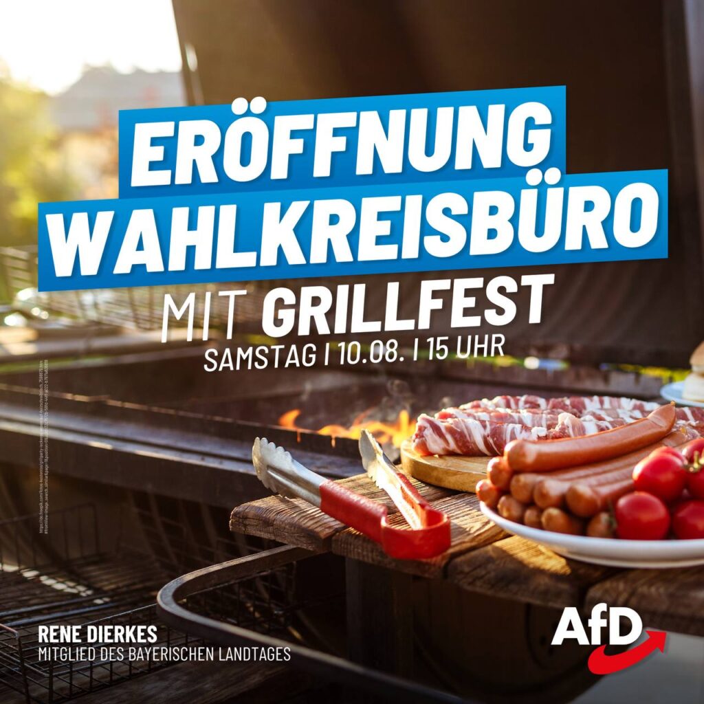 Eröffnung meines Wahlkreisbüros und des Bürgerbüros des AfD-Kreisverbandes München Ost am 10. August um 15 Uhr: Im Münchner Osten wollen wir die Eröffnung unseres ersten „blauen Objektes“ in München mit Ihnen […]