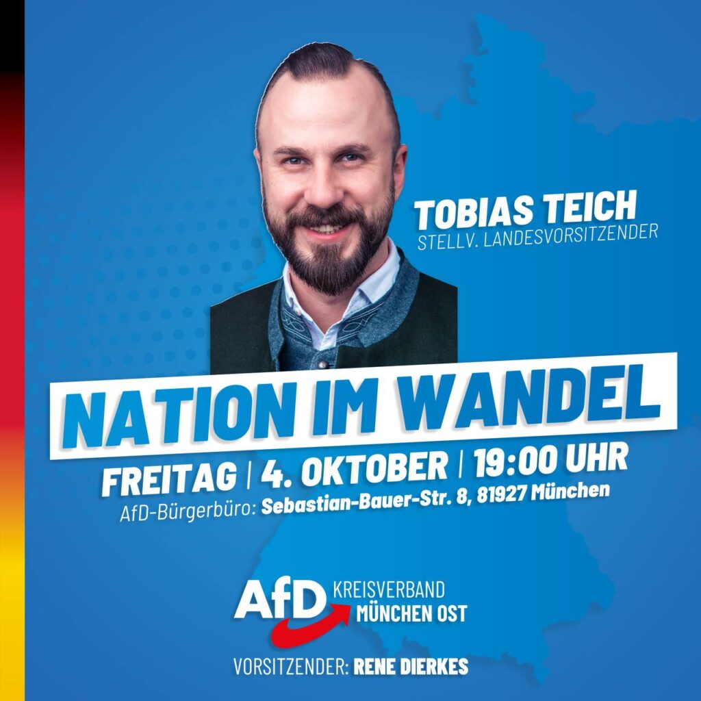 Mehr lesenInfoabend mit Tobias Teich am 4. Oktober im AfD-Bürgerbüro in München