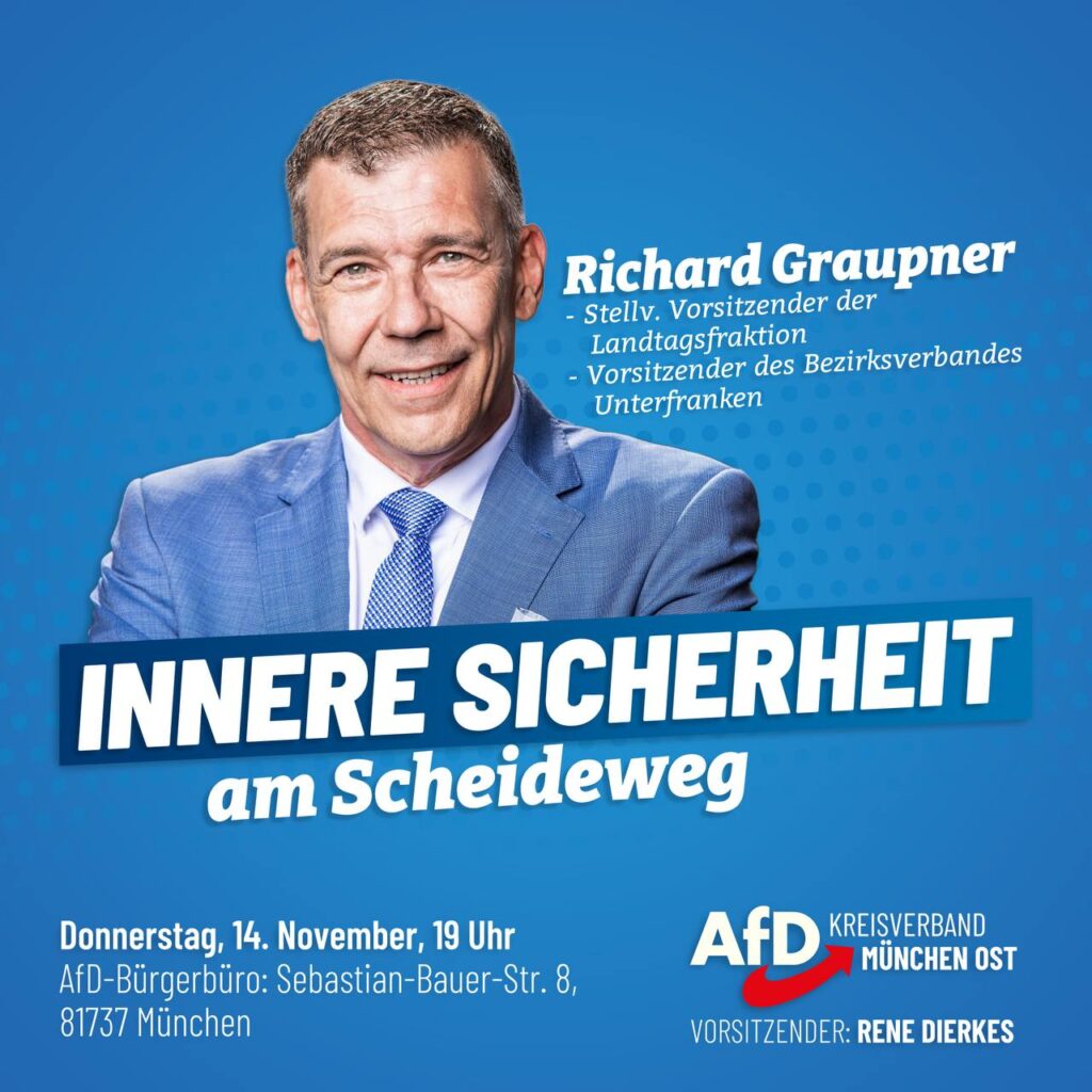 Werte Mitglieder und Interessenten, wir laden Sie herzlichst ein zum nächsten Infoabend im Münchner Osten! Richard Graupner, MdL, Bezirksvorsitzender der AfD-Unterfranken, wird zum Thema „Innere Sicherheit am Scheideweg“ referieren, Einblicke […]