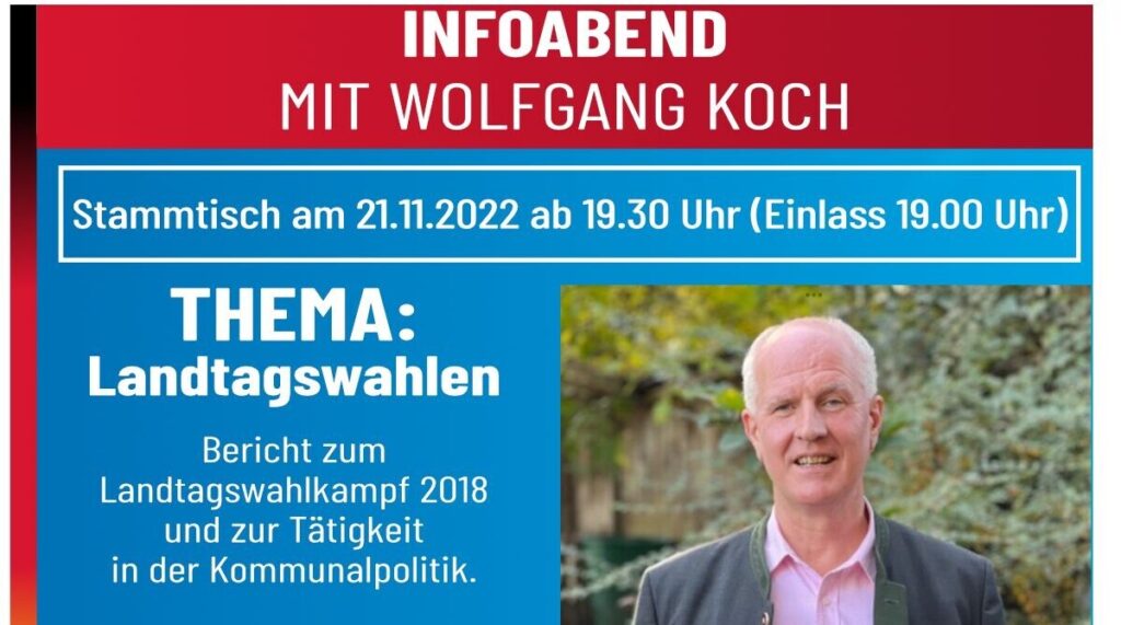 Sehr geehrte Mitglieder und Interessenten des AfD Kreisverbandes München Ost, wir laden Sie herzlichst zu unserem nächsten Stammtisch am 21.11.2022 ab 19:30 Uhr (Einlass 19:00 Uhr) in München ein. Wolfgang […]