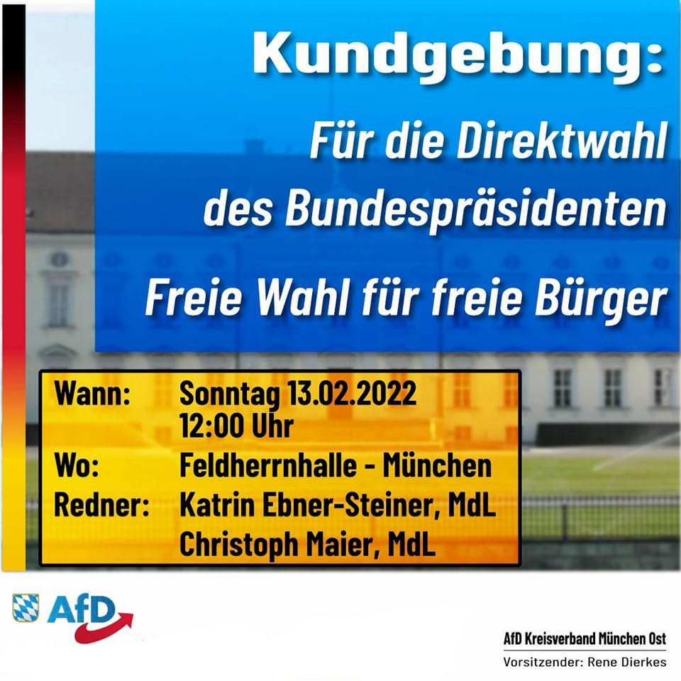 Mehr lesenKundgebung des AfD KV München Ost für Direktwahl des Bundespräsidenten