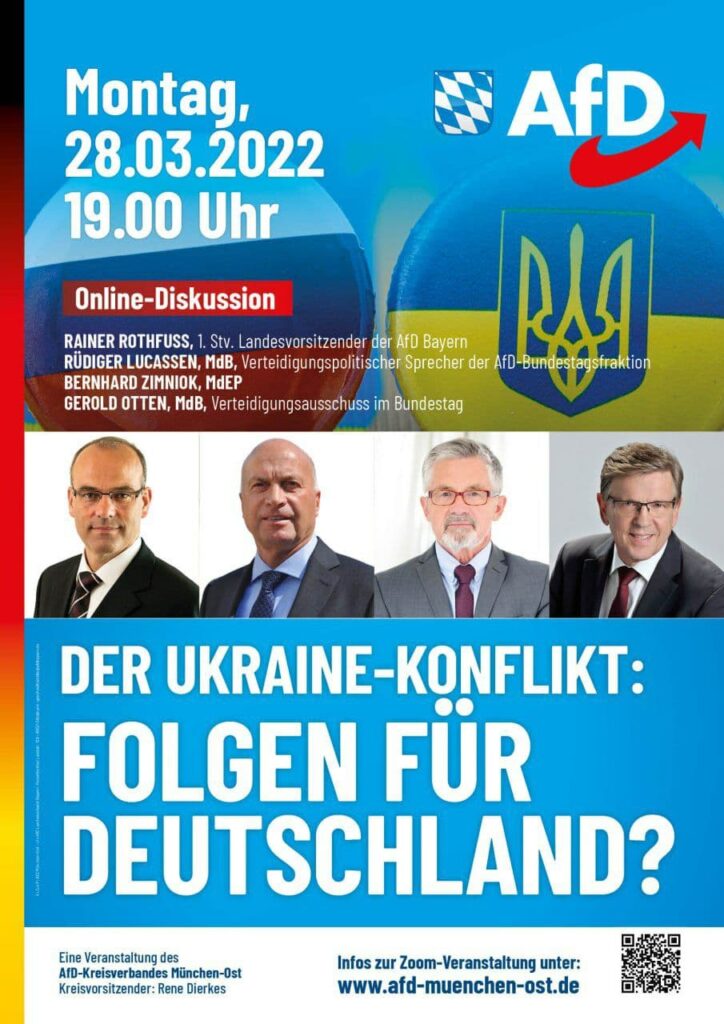 Werte Mitglieder und Interessenten, der AfD Kreisverband München Ost lädt Sie zu einer Online-Diskussion ein. Thema: Der Ukraine-Konflikt: Folgen für Deutschland? Zeit: 28.03.2022 um 19 Uhr (Einlass: 18.45 Uhr […]