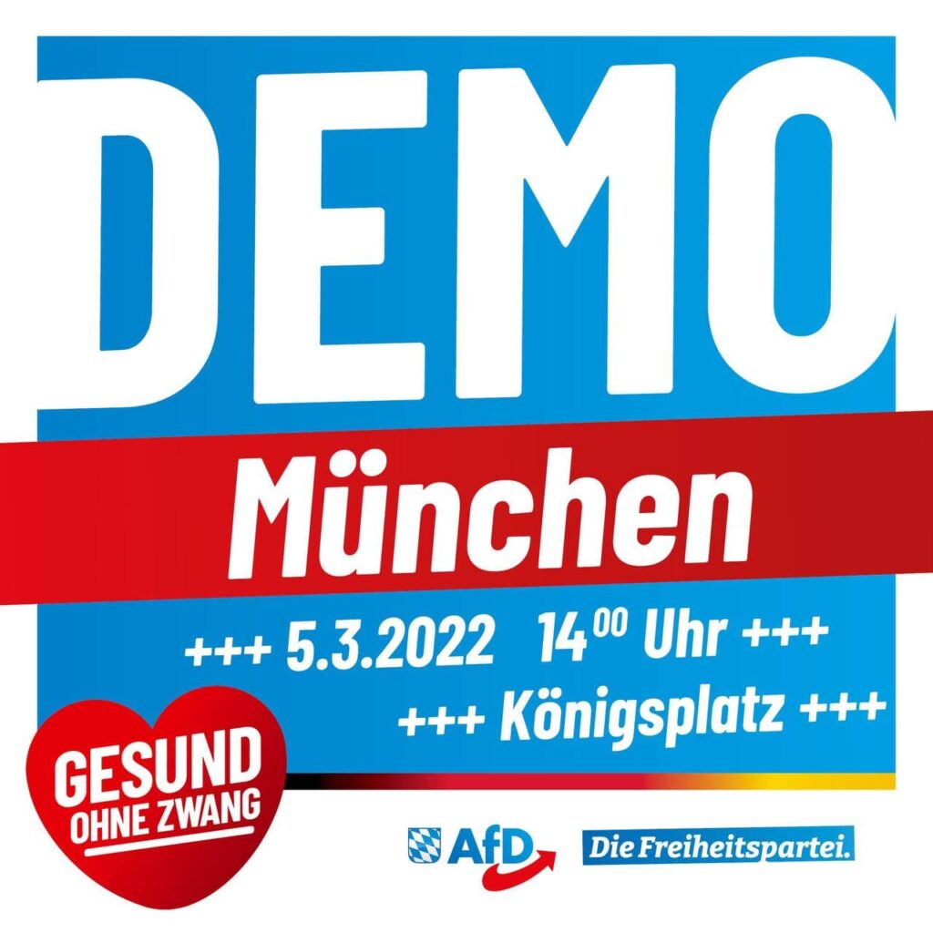 Mehr lesenKundgebung der AfD Bayern am 05.03.2022 ab 14 Uhr am Königsplatz