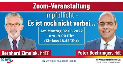 Mehr lesenZoom-Veranstaltung des AfD KV München Ost am 28.03.2022 um 19 Uhr