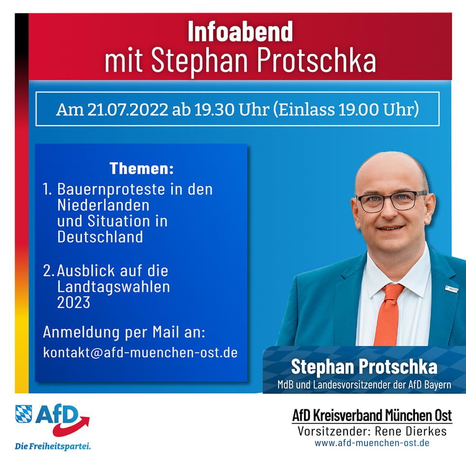 Infoabend des AfD KV München Ost mit Stephan Protschka am 21. Juli 2022
