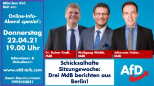 Drei Bundestagsabgeordnete berichten exklusiv bei unserem Onlne-Infoabend über dieses aber auch weitere Themen, die diese Woche im Bundestag aktuell waren. Im Anschluß haben Sie die Gelegenheit mit den MdB zu diskutieren.