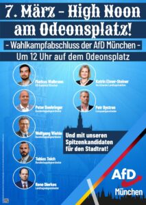 Am 07. März um 12 Uhr ist es soweit. Erlebe unsere große Wahlkampfabschlussveranstaltung auf dem Odeonsplatz mit Rednern aus dem Bundestag, Landtag, Europaparlament und dem Stadtrat!
