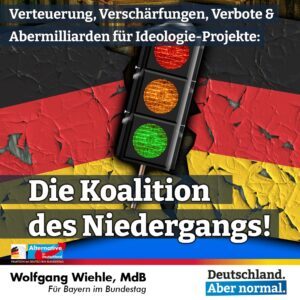 Jetzt ist sie final, die rote Ampel für Deutschland! Der Koalitionsvertrag liegt vor und er beinhaltet Unheilvolles für Deutschland und seine Bürger. Ob die wachsweiche FDP ein Ministerium bekommt oder die roten und grünen Genossen den Kuchen unter sich aufteilen, macht dabei keinen Unterschied mehr. Gemeinsam stellt man künftig das Land von den Füßen auf den Kopf, sei es beim ideologiegeprägten „Klimaschutz“, der Außenpolitik, der Migration oder der Wirtschaft.