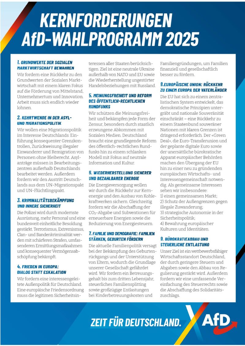 Bundestagswahl 2025 Kernforderungen