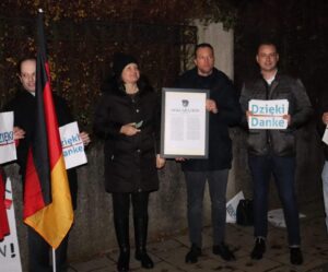 Zeitgleich fand auch in Berlin vor der polnischen Botschaft eine große Kundgebung statt, dort organisiert von Petr Bystron, MdB.