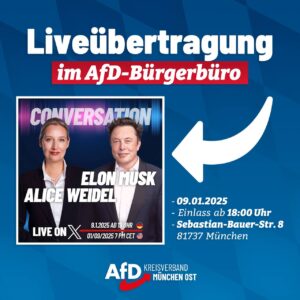 Liveübertragung des Gesprächs Weidel/Musk am 9. Januar im Bürgerbüro