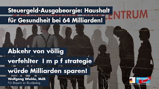 Wiehle forderte den Gesundheitshaushalt auf ein Normalmaß zurückzuführen und verstärkt für die Verbesserung der Gesundheitsversorgung zu verwenden. Den vorgeschlagenen 64 Milliarden-Etat lehne die AfD ab.