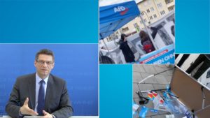 Der Münchner Oberbürgermeister-Kandidat der AfD, Wolfgang Wiehle, hat die Übergriffe von mehreren Mitgliedern der linken Szene auf einen Infostand seiner Partei in München scharf verurteilt. Am gestrigen Mittwoch (11.März 2020), hatten nach seinen Angaben am Rande einer Gegendemonstration mit mehreren großen SPD-Fahnen gewalttätige und zum Teil vermummte Jugendliche den Stand am Mariahilfplatz kurz nach 18 Uhr zunächst umstellt, dann einen Tisch mit Infomaterial umgeworfen und Kandidaten angerempelt. Die herbeigerufene Polizei konnte einen maskierten Täter auf frischer Tat festhalten und die übrigen erst nach einem Gerangel zur Seite drängen, schilderte der Bundestagsabgeordnete und verwies auf ein Tatvideo, dass die AfD München auf ihrer Facebook-Seite als Beleg für die Übergriffe dazu ins Netz gestellt hat. Darauf ist unter anderem zu hören, dass Gegendemonstranten die rasch eingetroffenen Polizisten beschimpfen. Wiehle will die SPD-Demonstranten vor Ort nicht direkt verantwortlich machen für den Vorfall. Allerdings sei der Übergriff mutmaßlich aus deren Sympathisanten-Umfeld erfolgt, erklärte er.