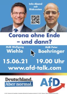 Diskutieren Sie mit dem Spitzenkandidaten der bayerischen AfD, Peter Boehringer, und mit dem Direktkandidaten in München Süd, Wolfgang Wiehle.