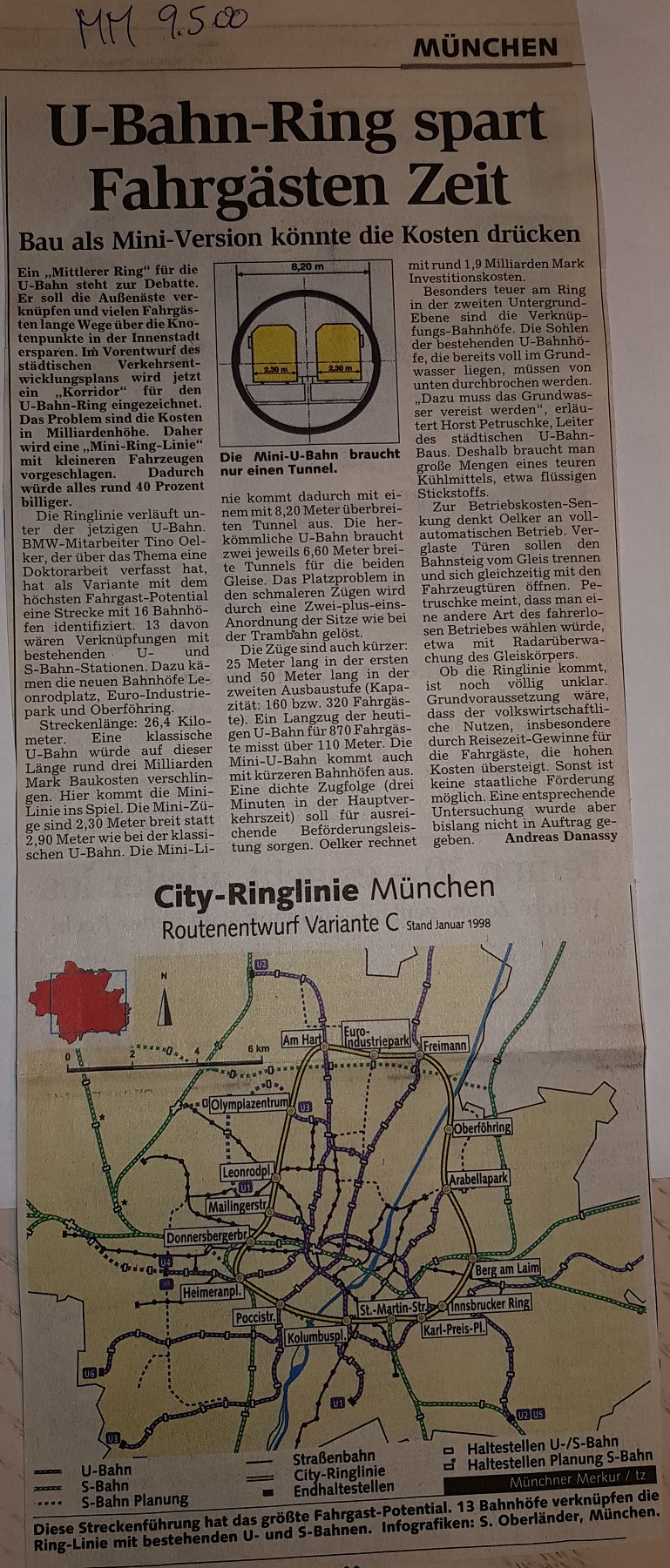 - Der Mittlere Ring braucht weitere Tunnelbauten: Am Englischen Garten und im Bereich der Tegernseer Landstraße, sowie eine Verlängerung des Tunnels in der Landshuter Allee nach Norden.