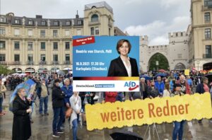 Neben der Hauptrednerin Beatrix von Storch sprachen am Stachus weitere Bundestagsabgeordnete, die wieder für das deutsche Parlament kandidieren: Gerold Otten (Direktkandidat München-Land), Wolfgang Wiehle (Direktkandidat München-Süd) und der bayrische Spitzenkandidat Peter Boehringer.