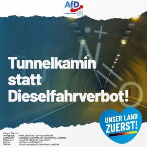 Weil diese Tatsachen leider wenig Berücksichtigung bei der Bewertung der Messergebnisse findet, haben wir beantragt, einen Tunnelkamin zu installieren. Dieser würde im Zusammenspiel mit den Ventilatoren an der Tunneldecke für einen besseren Luftaustausch im Tunnel sorgen und Abgase besser abtransportieren. Im gleichen Atemzug fordern wir außerdem eine Aussetzung des kürzlich erweiterten Dieselfahrverbotes auf dem Mittleren Ring.